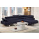 Go out of this world with a two-piece sectional sofa draped in Polyfiber. Rectangular shapes adorn this sofa that features movable back supports and an elongated chaise for an extraterrestrial appeal. Available in blue and tan.