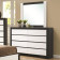 Sleek simple lines are enhanced by the mod White and Black color of this dresser. The piece is fully upholstered in man-made leather, putting a unique spin on contemporary bedroom decor. Eight drawers ensure ample space to store your clothing, and intriguing block feet add a geometric element to the piece. Capture upscale modern style with this unique upholstered dresser. /LL
